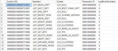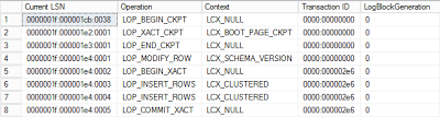 CREATE DATABASE TEST; GO ALTER DATABASE TEST SET RECOVERY SIMPLE; GO USE TEST; GO CREATE TABLE dbo.Table1 ( ID int IDENTITY(1,1) PRIMARY KEY CLUSTERED, detail varchar(10) ); GO