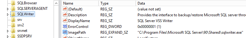 HKEY_LOCAL_MACHINE\SYSTEM\CurrentControlSet\Services\SQLWriter