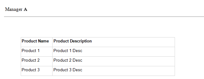 Once the subscription is run, Manager A and Manager B should receive the email with the product listing report. Here is the example of the email body received by Manager A. Notice that there are only 3 products which are from the Manager A's department.