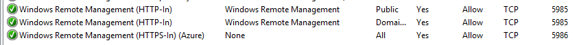 winrm set winrm/config/client '@{TrustedHosts="SQLTest1"}'In addition, if the sending server is not in the same subnet as receiving server, you may need to modify the firewall. By default, the firewall exception for public profiles limits access within same local subnet. Modify the remote server firewall public profile for Windows Remote Management (HTTP-In) or (HTTPS-In) to include the subnet or IP of the sending server.