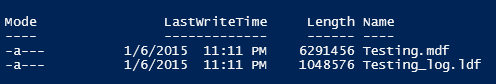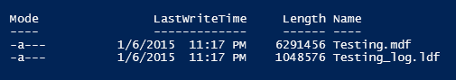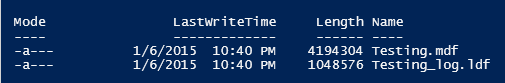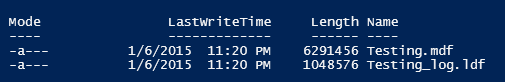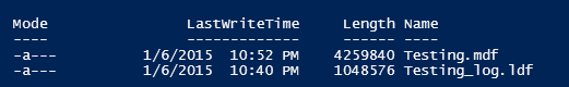 Here is what it look slike with PowerShell Get-ChildItem cmdlet on the database file folder. LastWriteTime as Date Modified as seen in the explorer. Length as the size (in byte) of the file.
