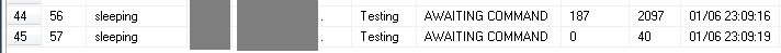 sp_who2, we identify and kill all the connection to Testing database,KILL 56 KILL 57