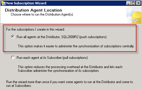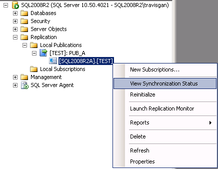 Now that the publication has been setup on SQL Server A, lets setup the subscriber (SQL Server B) for this publication. On SQL Server A, creates new subscription