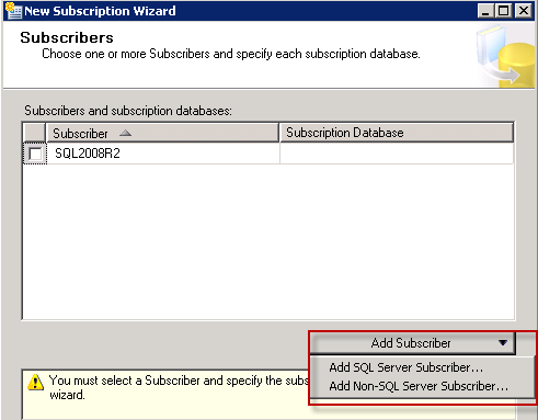 - Connect to subscriber with either with a Windows account or SQL account. Windows account will be used in this case. The same Windows account (connecting account) with at least db_owner database role in subscription database
