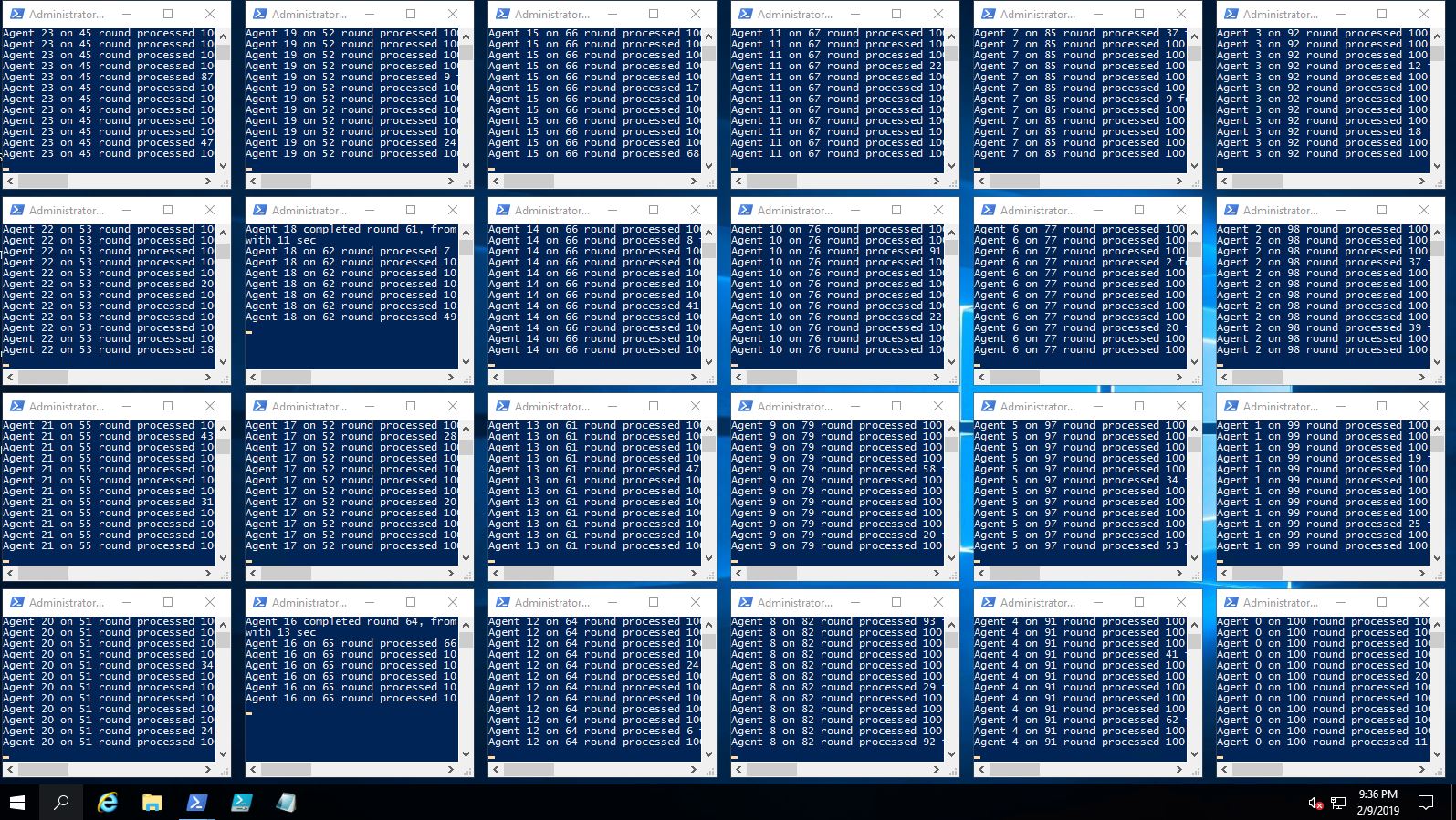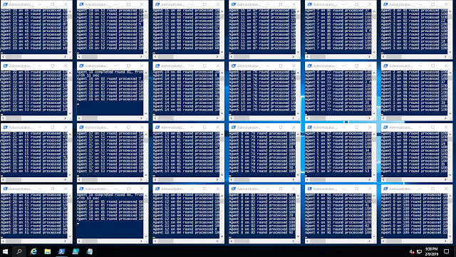 Single process would be boring and inefficient. The process do need to read the text file line by line and insert into Azure table storage. It doesn't seem like there is any native parallel process of reading file and performing the insert. Especially consider the file is around 25 GB in size and the VM has only 4 GB of memory. I thought of a logic where it could have multiple powershell process its own unique section line by line simultaneously with minimum memory required. I picked 24, just an arbitrary number but with previous experience. It does consume the 2 vcpu on VM around 90% the entire time. Good.